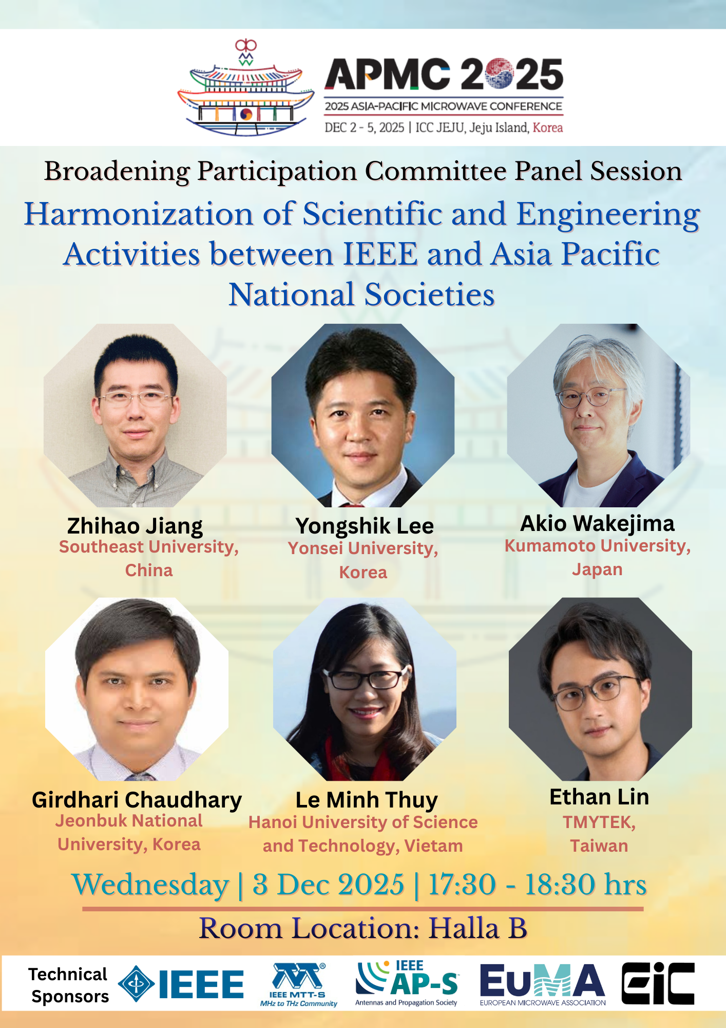 | RF Circuit Techniques for Wideband and Multi-Band Systems | [SS] Innovative Front-End Components in mmWave IC Design | "Ask us Anything" Session | Millimeter-Wave and Compact Antenna Technologies | EMC Security and Modeling | mmWave Phased Array Antenna System | Radar Hardware and Systems | ||||